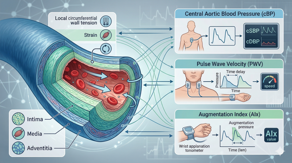 Relationship of carotid wall layers with non invasively-measured central hemodynamic parameters and local circumferential wall tension
